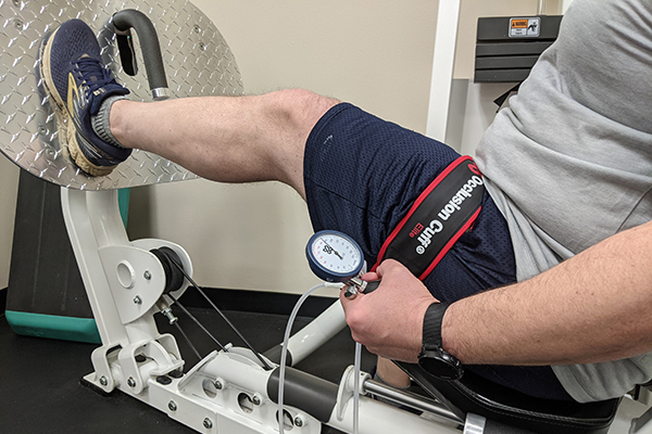 The aim of BFR training is to mimic the effects of high intensity exercise by recreating or changing the physiologic environment in the muscles being targeted by using a cuff. The cuff is placed above the muscle being exercised and low intensity exercises can then be performed. The same physiological adaptations to the muscles (eg. release of hormones, hypoxia, and cellular swelling,) will take place during the BFR training at the much lower intensity as would occur with higher intensity exercise. Schedule an appointment today.